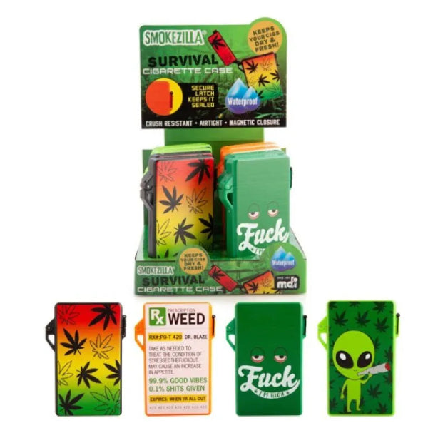 Keep your cigarettes protected wherever life takes you with the Smokezilla Cigarette Survival Case. Built for durability and convenience, this rugged case is designed to shield your smokes from the elements while keeping everything secure and organised. Featuring a waterproof seal and reinforced closure system, it’s ideal for outdoor adventures, travel, or everyday use. With bold weed-themed designs, it also adds a fun, eye-catching touch to your essentials.